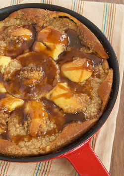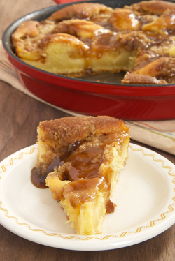 First of all, it’s one of those magical one-layer cakes that I love. No stacking layers, no frosting. Then, there’s the plus of making it all with just a couple of bowls and one skillet.